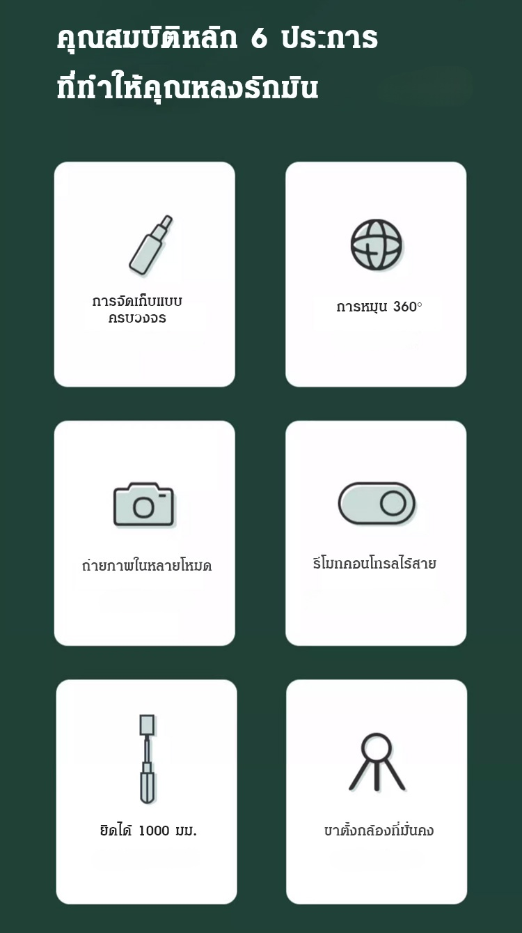 🌟 ขาตั้งกล้องไม้เซลฟี่อเนกประสงค์ | ไม้เดียวในมือ ครบทุกความสนุกในหนึ่งเดียว 🤳